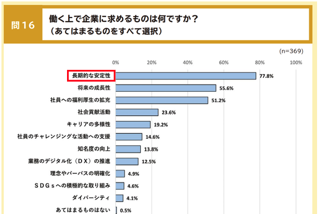 このように、若手人材の多くは長期的な安定性終身雇用制度を望んでいます。