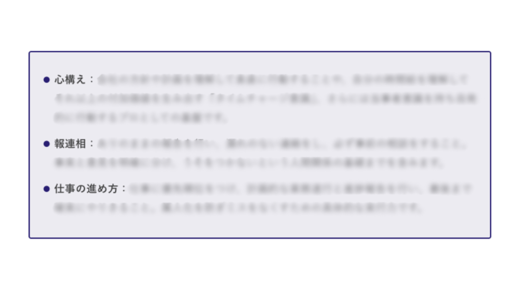 プロとしての当事者意識を持つ「心構え」、事実と意見を分ける「報連相」、確実にやりきる「仕事の進め方」の3つの柱を解説します。