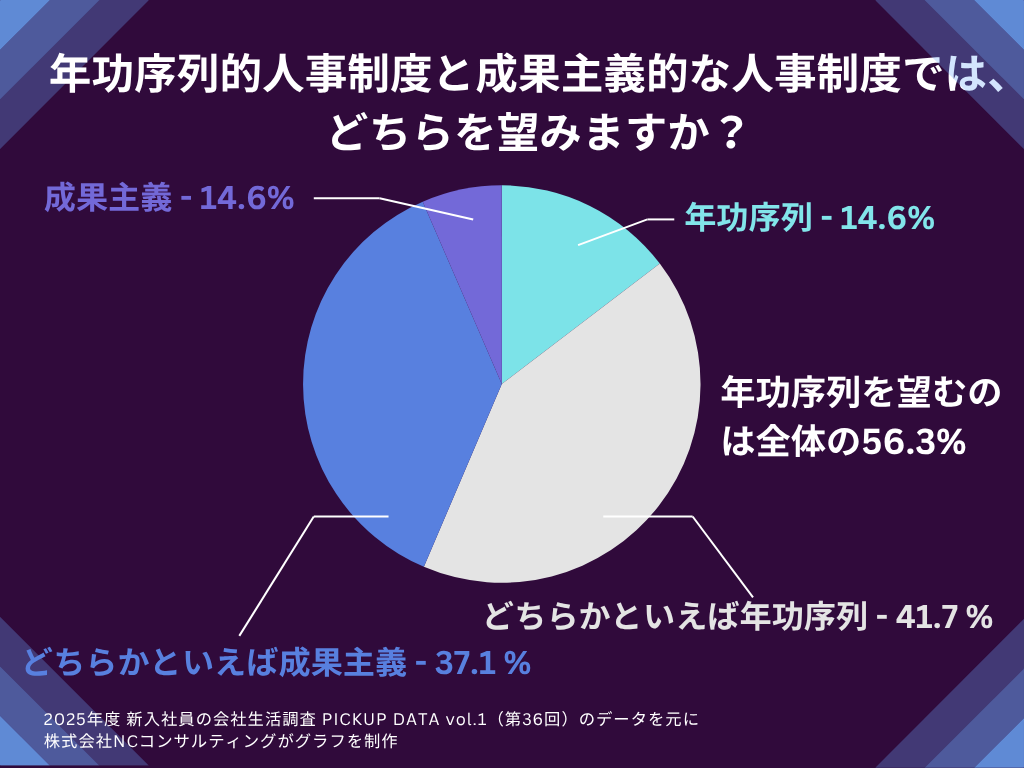 学校法人産業能率大学総合研究所が発表した「2025年度(第36回)新入社員の会社生活調査」によれば、新入社員の約6割(56.3%)が「年功序列制度」を望んでいるという結果が出ています。